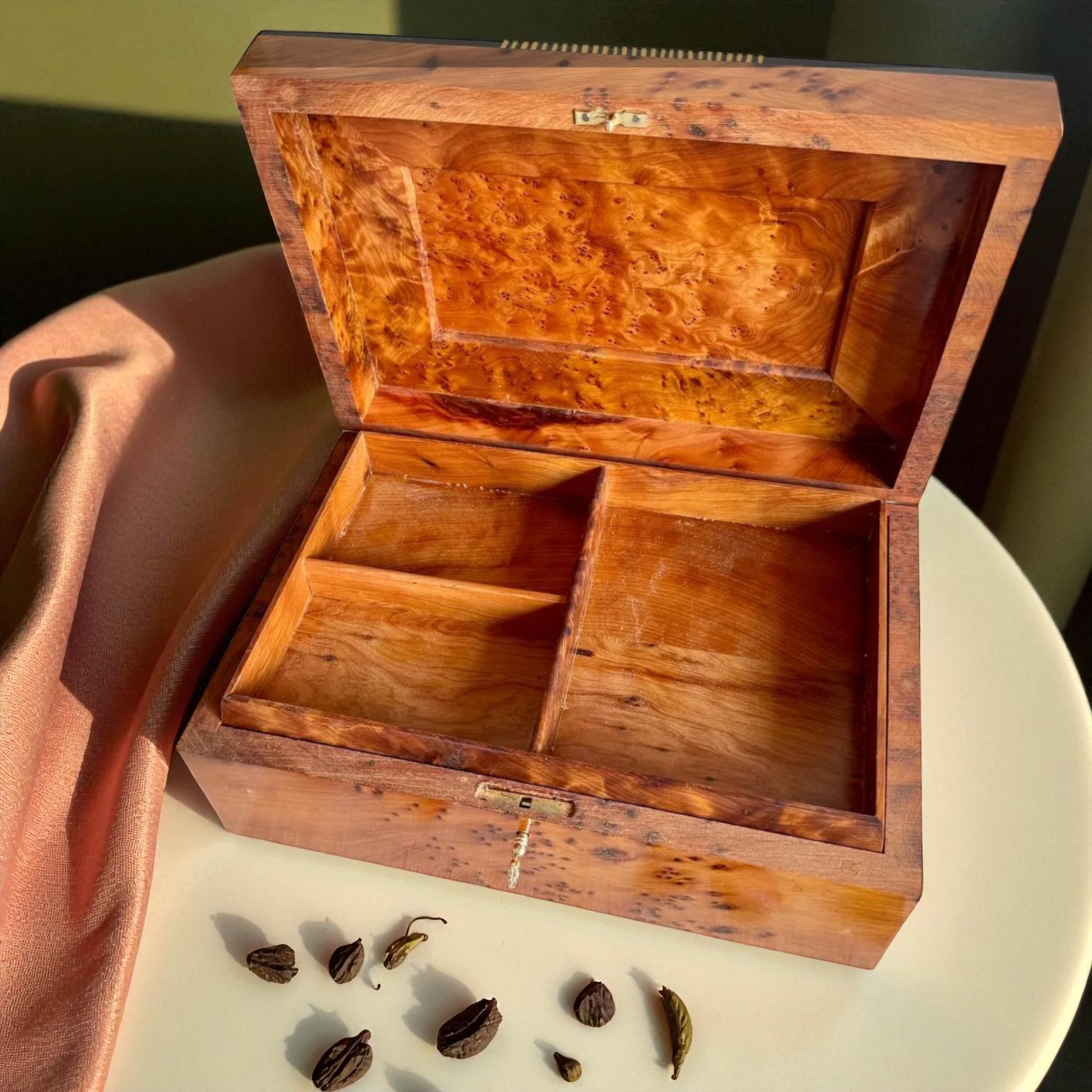 Lockable Jewelry Box – Handmade Thuya Burl Luxury Organizer